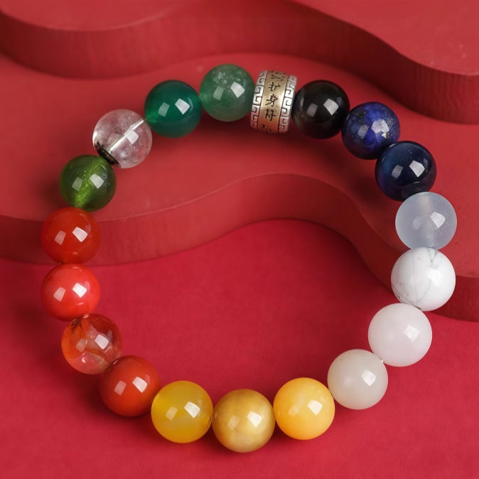 Drawing from traditional color theory and modernized for today’s fashion, this piece uses a five-tone palette to create a balanced and culturally rich accessory.