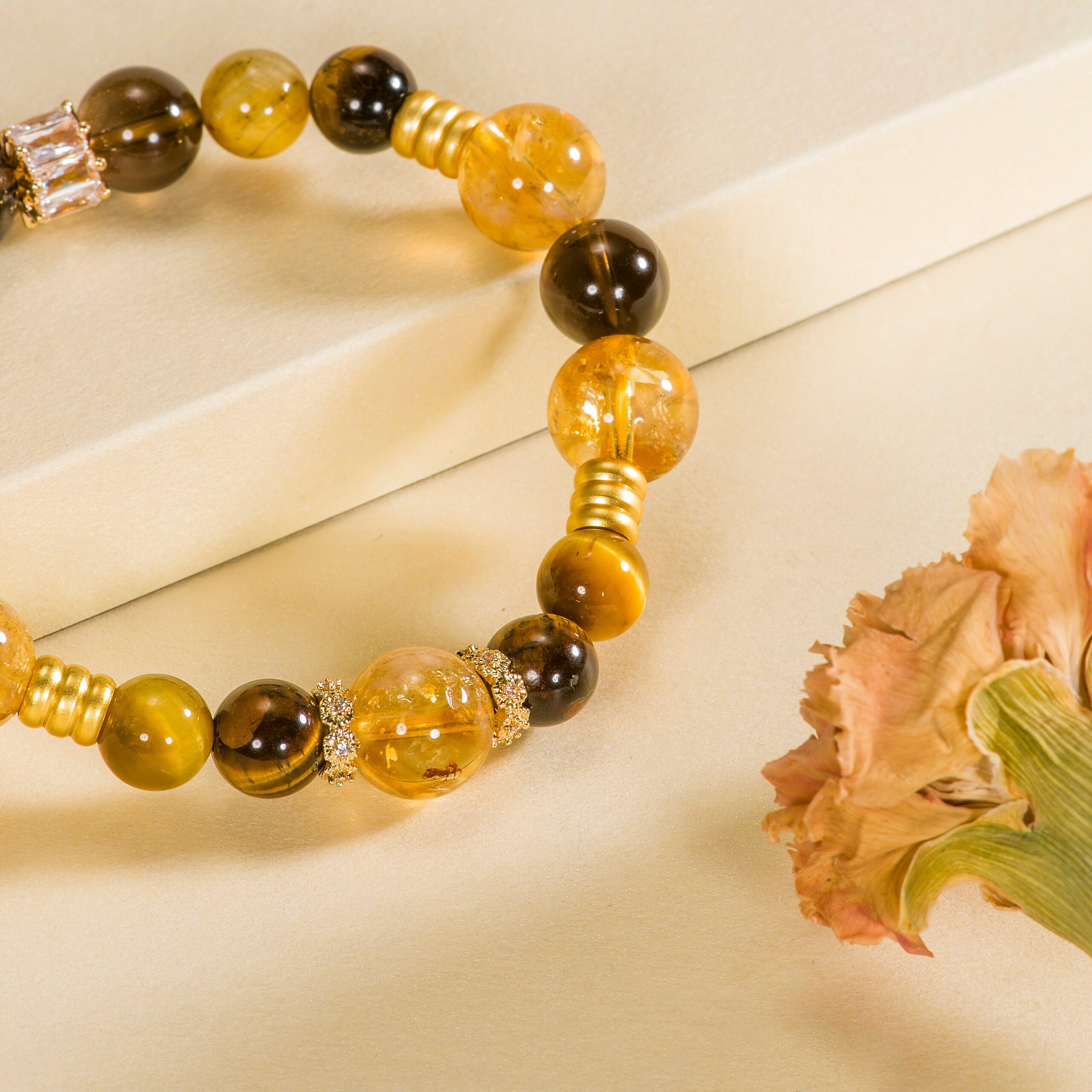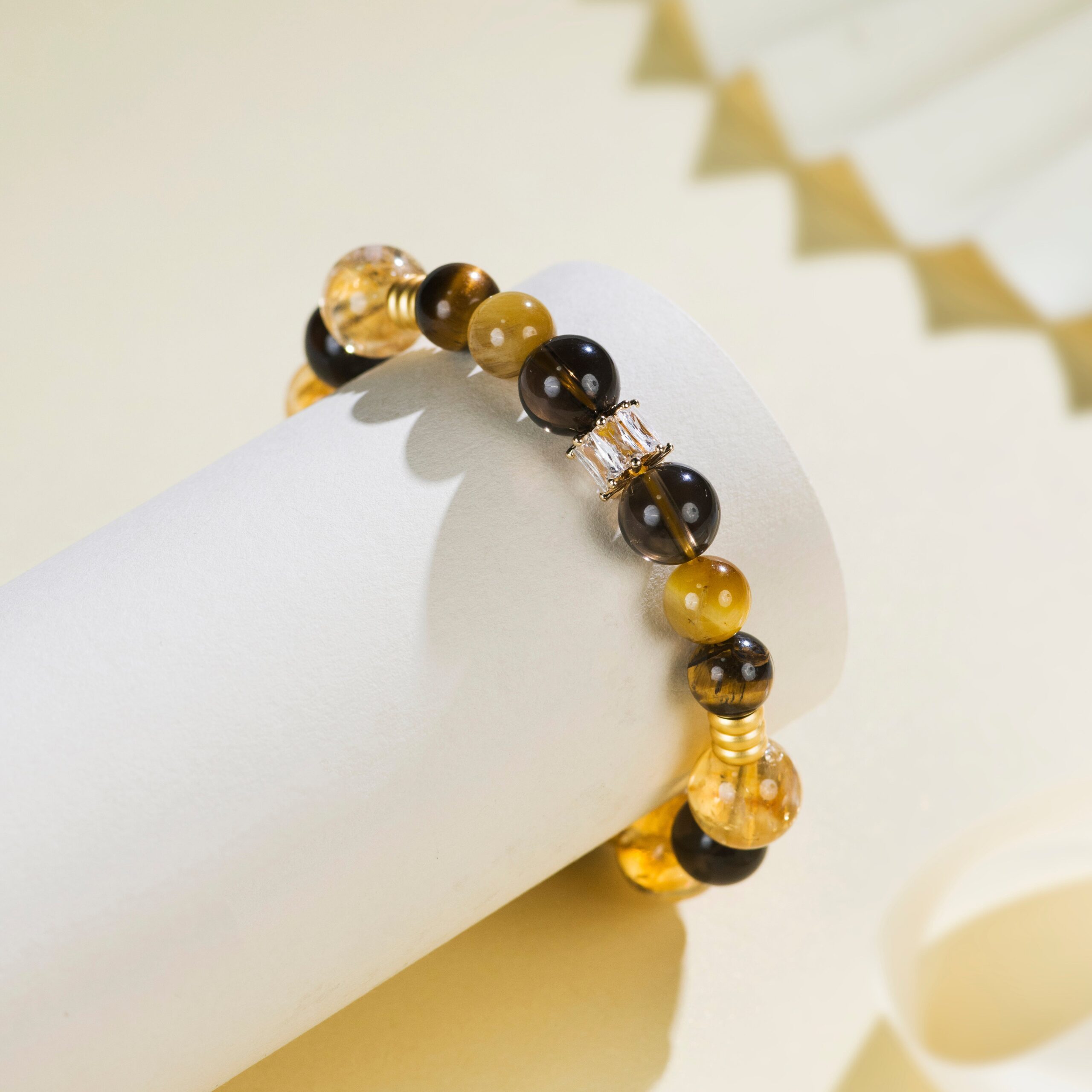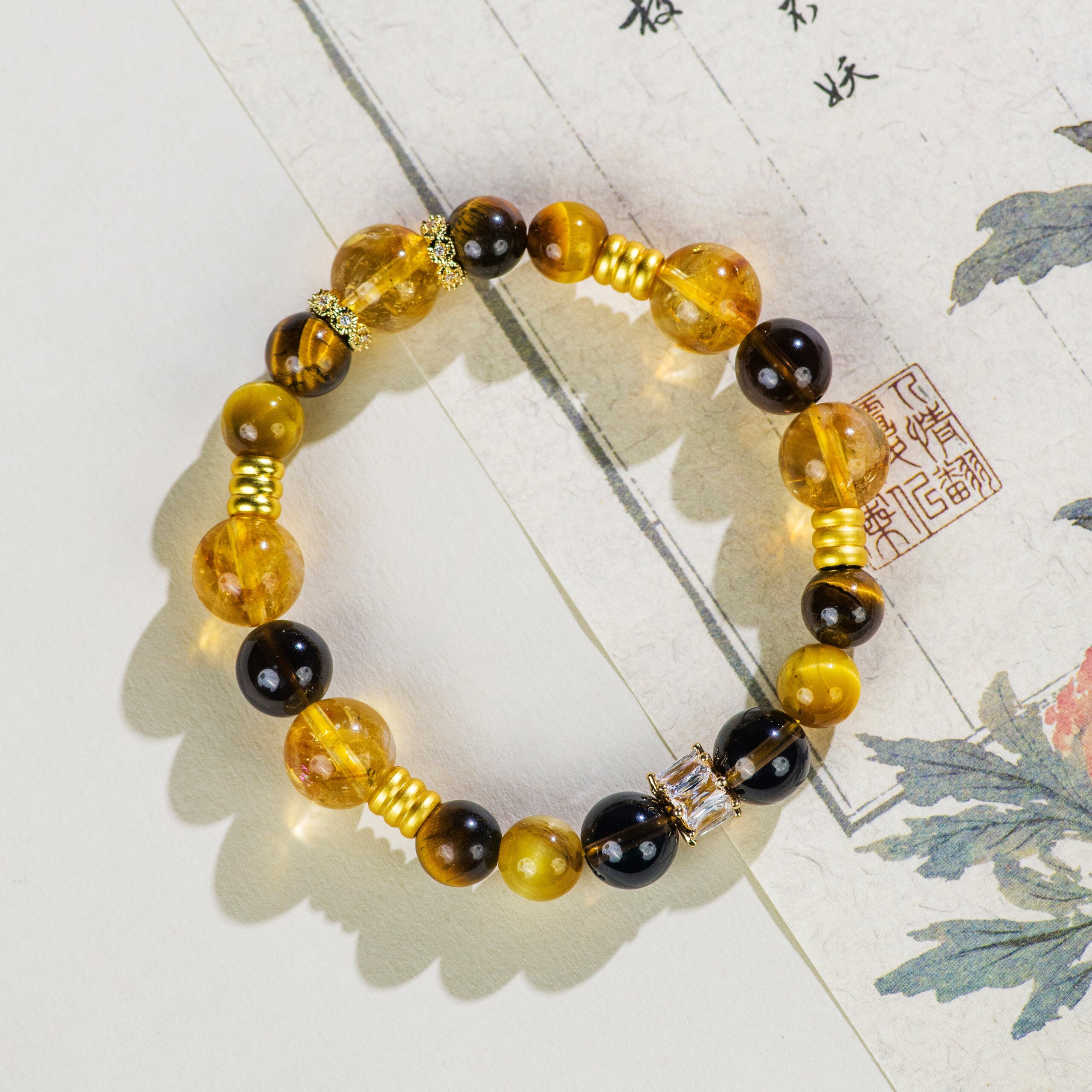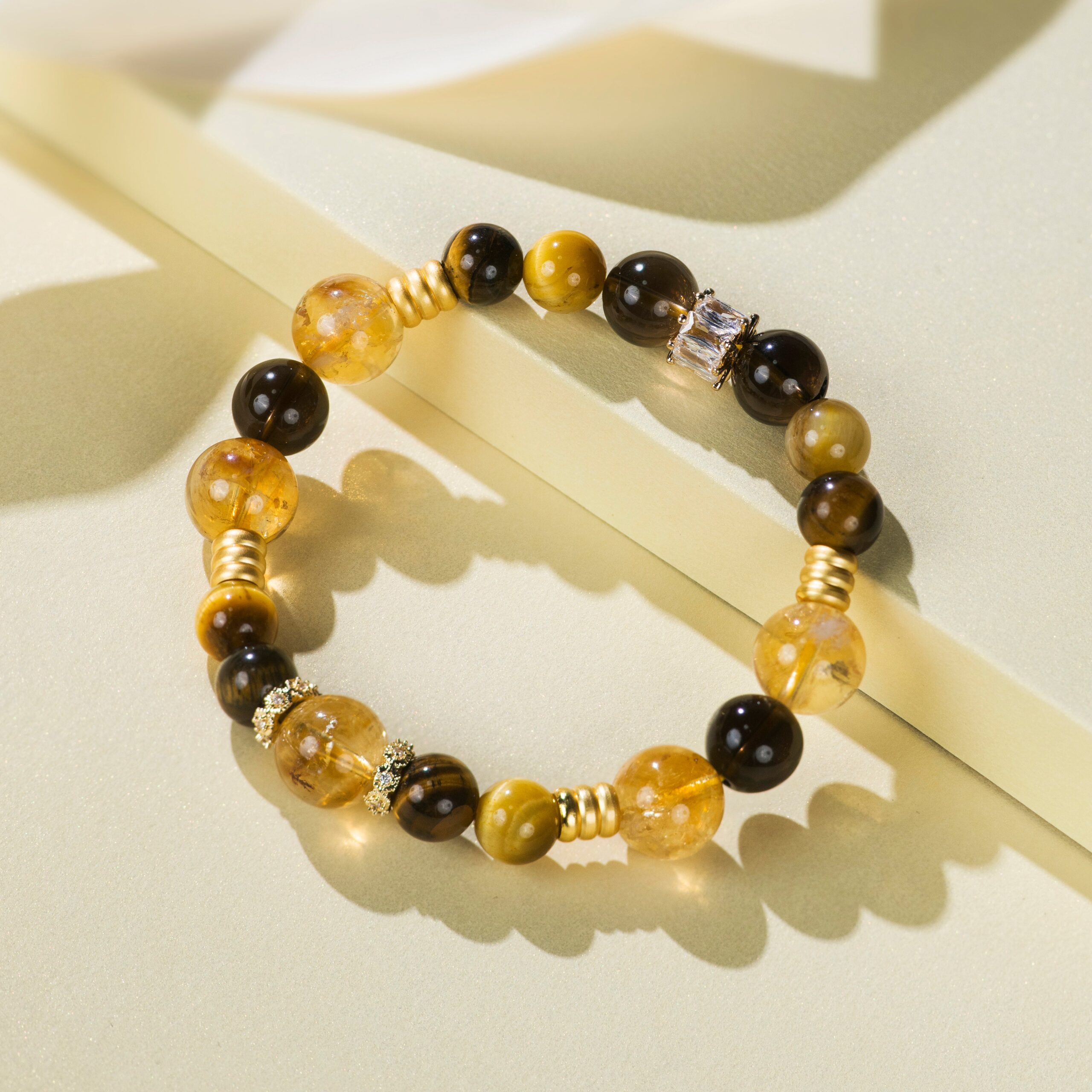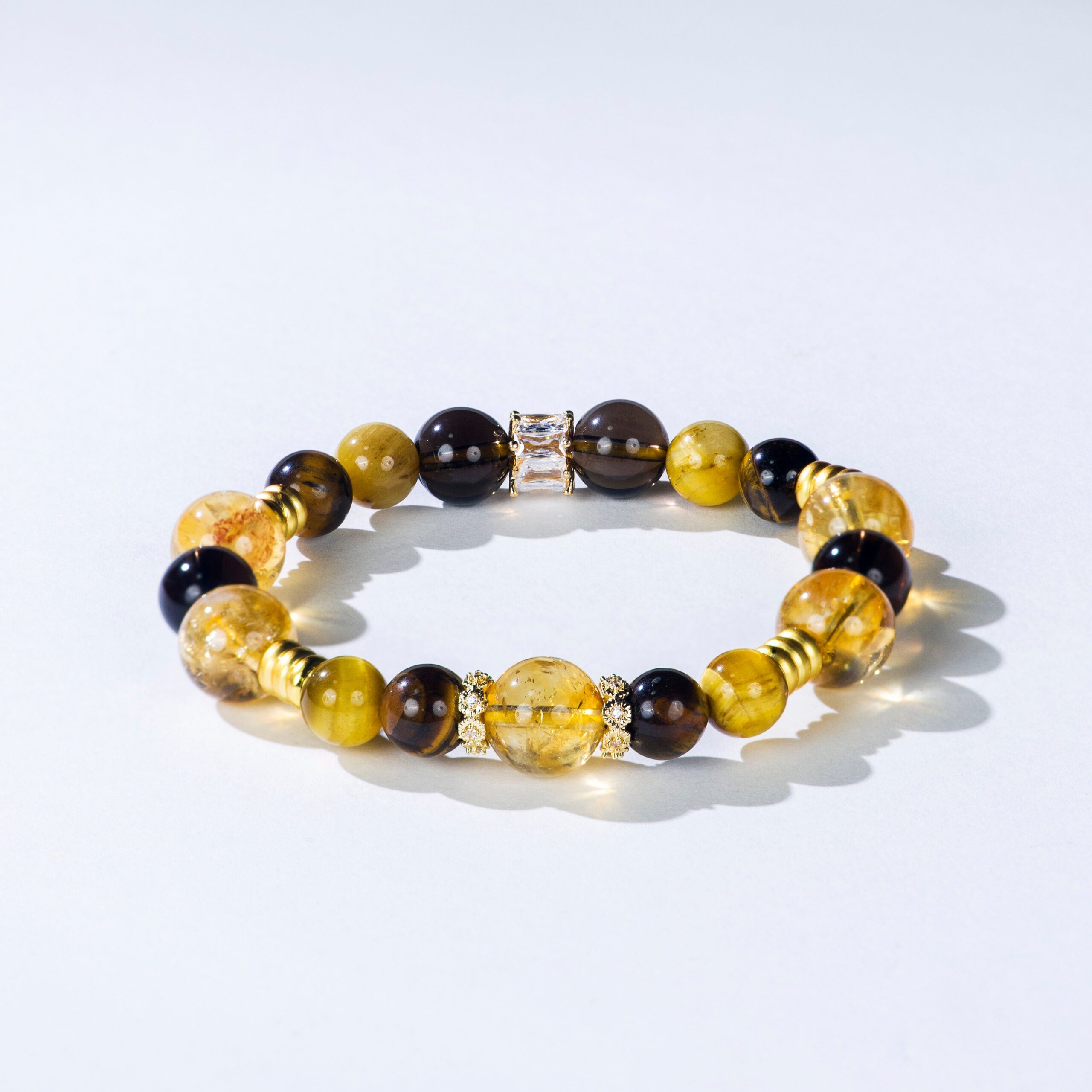 Combining the weight of grounding stones with the brilliance of golden rutilated quartz, this bracelet strikes a perfect balance between strength and style, suitable for both commute and leisure.