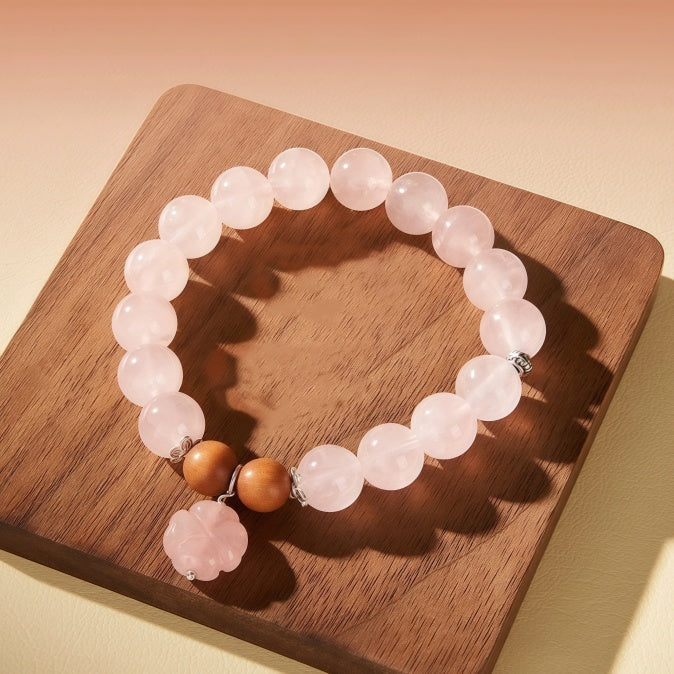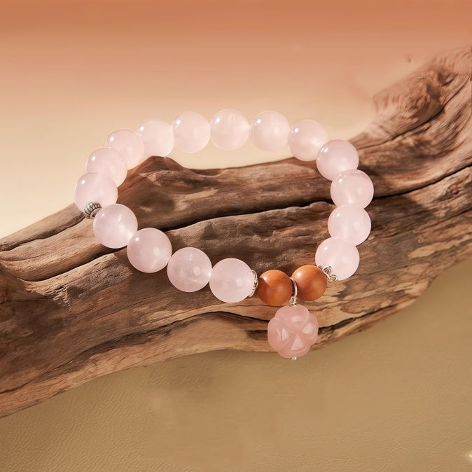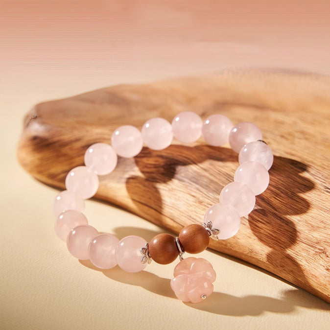 Centered on warm, rosy-toned crystals with a lustrous finish. Its simple and elegant design makes it a fashionable token of affection and grace.