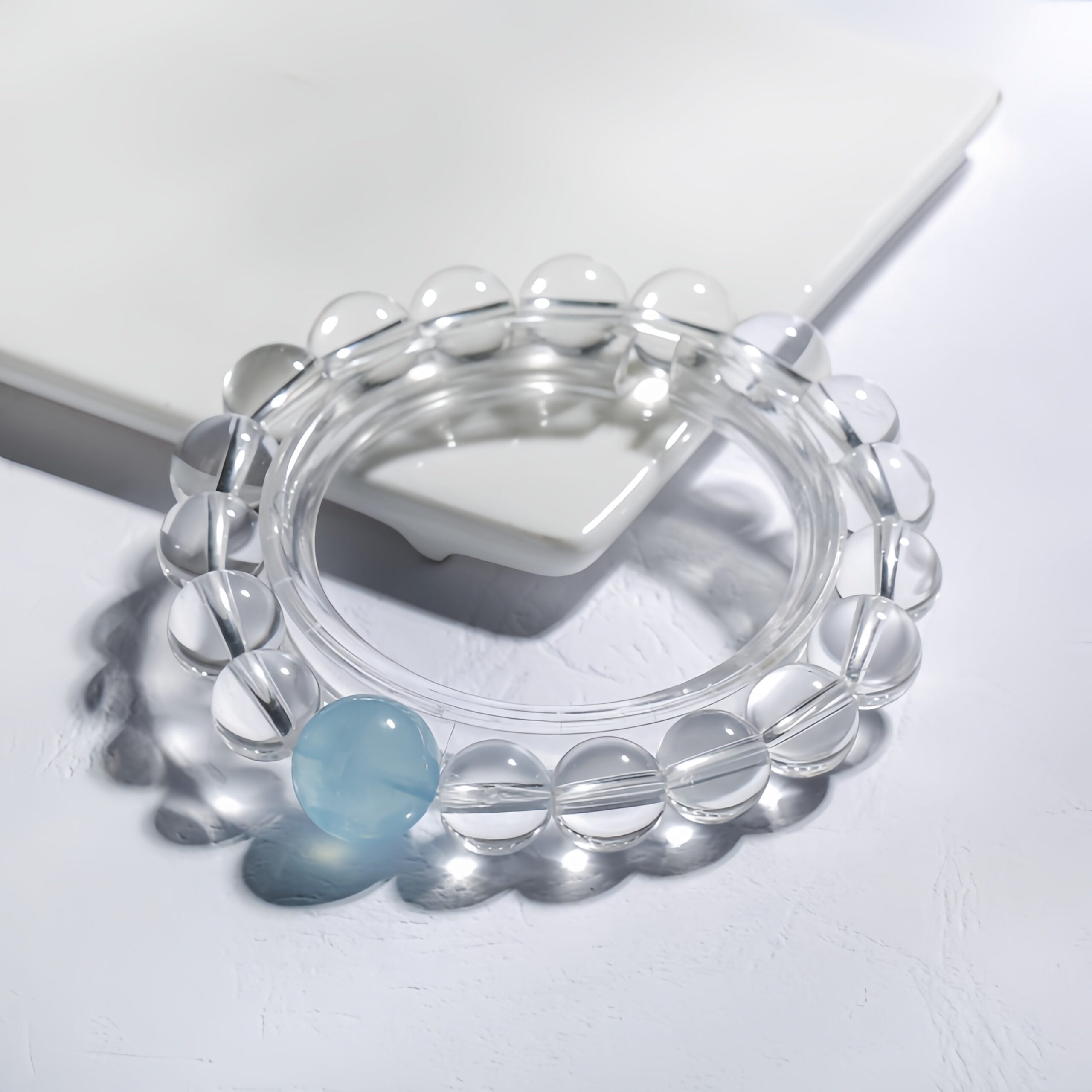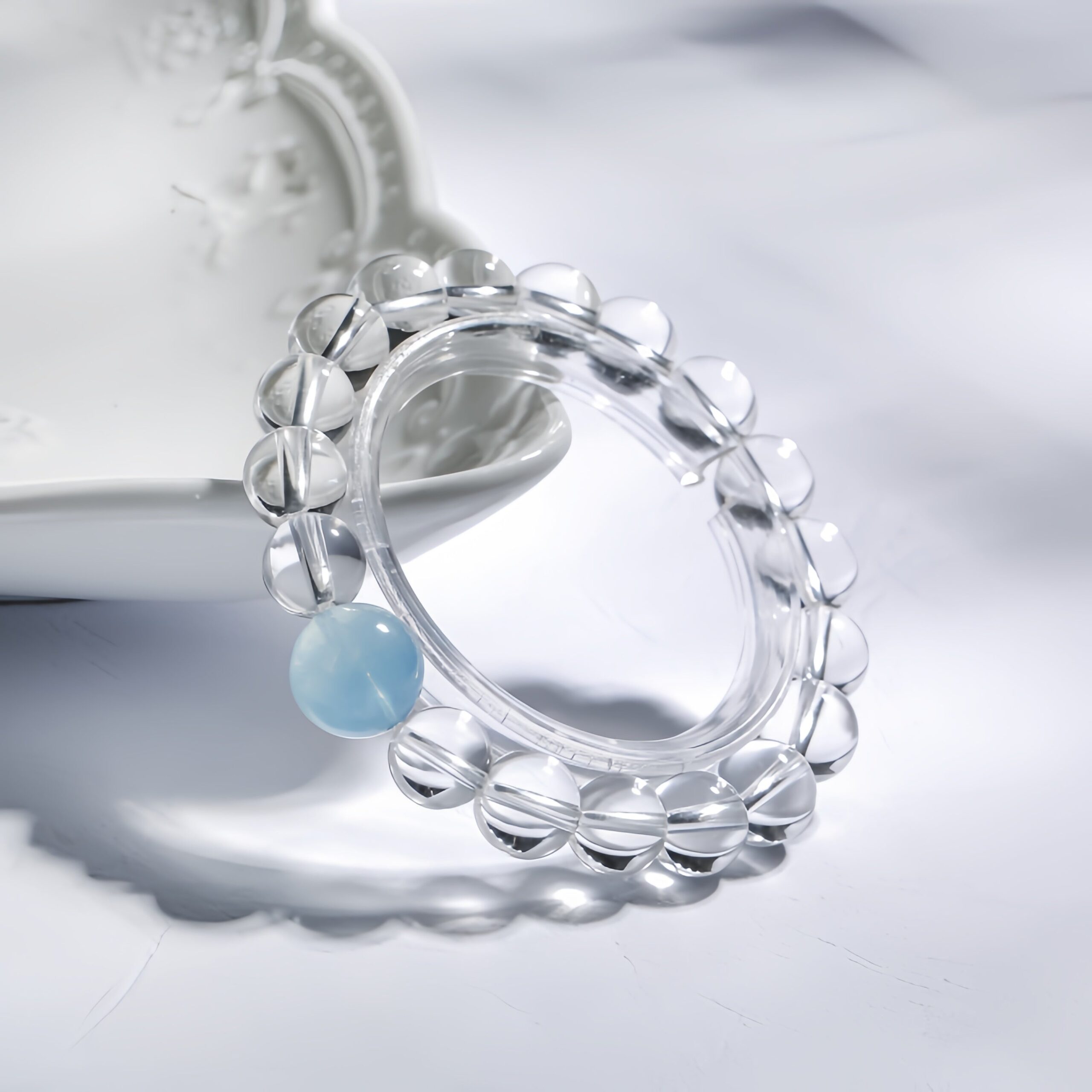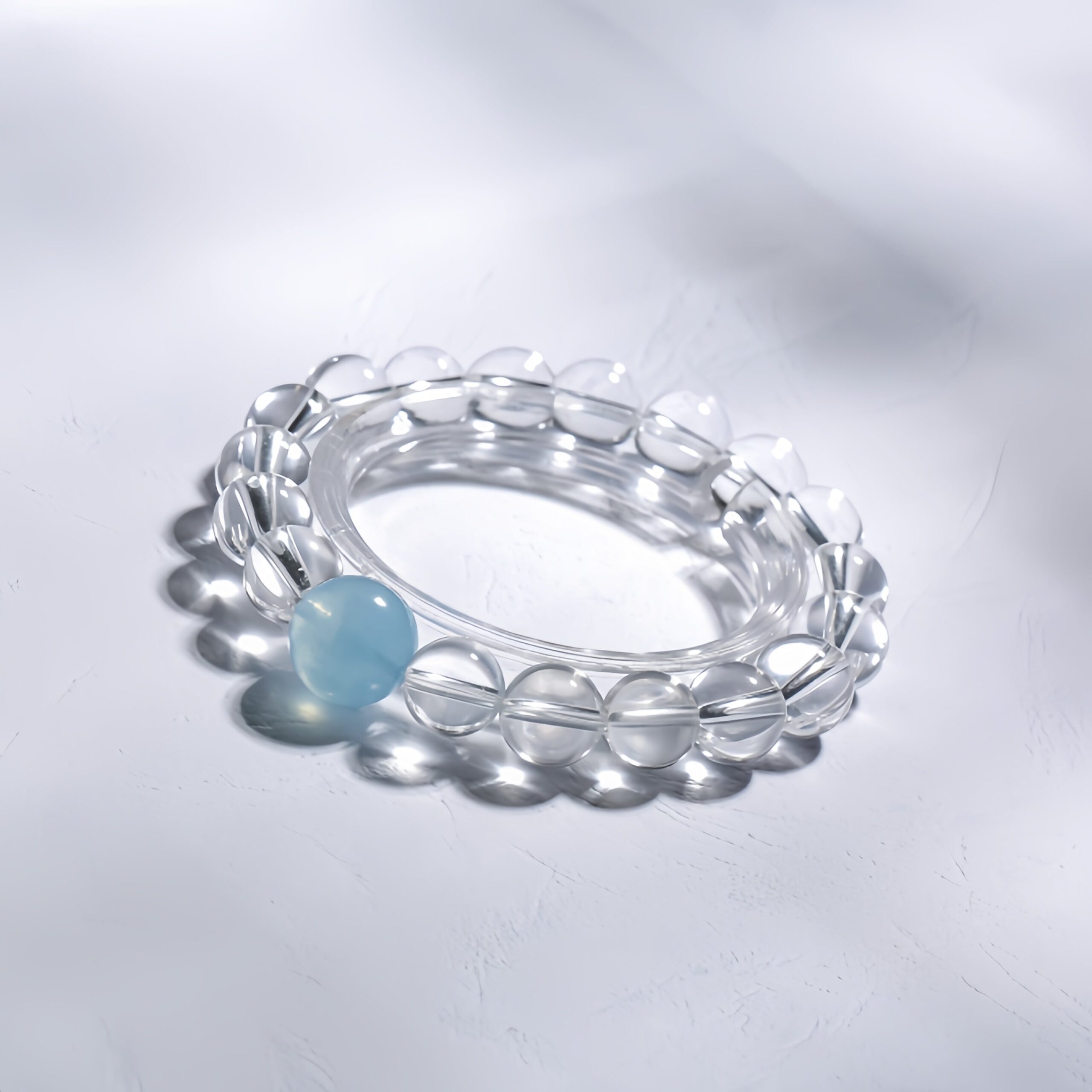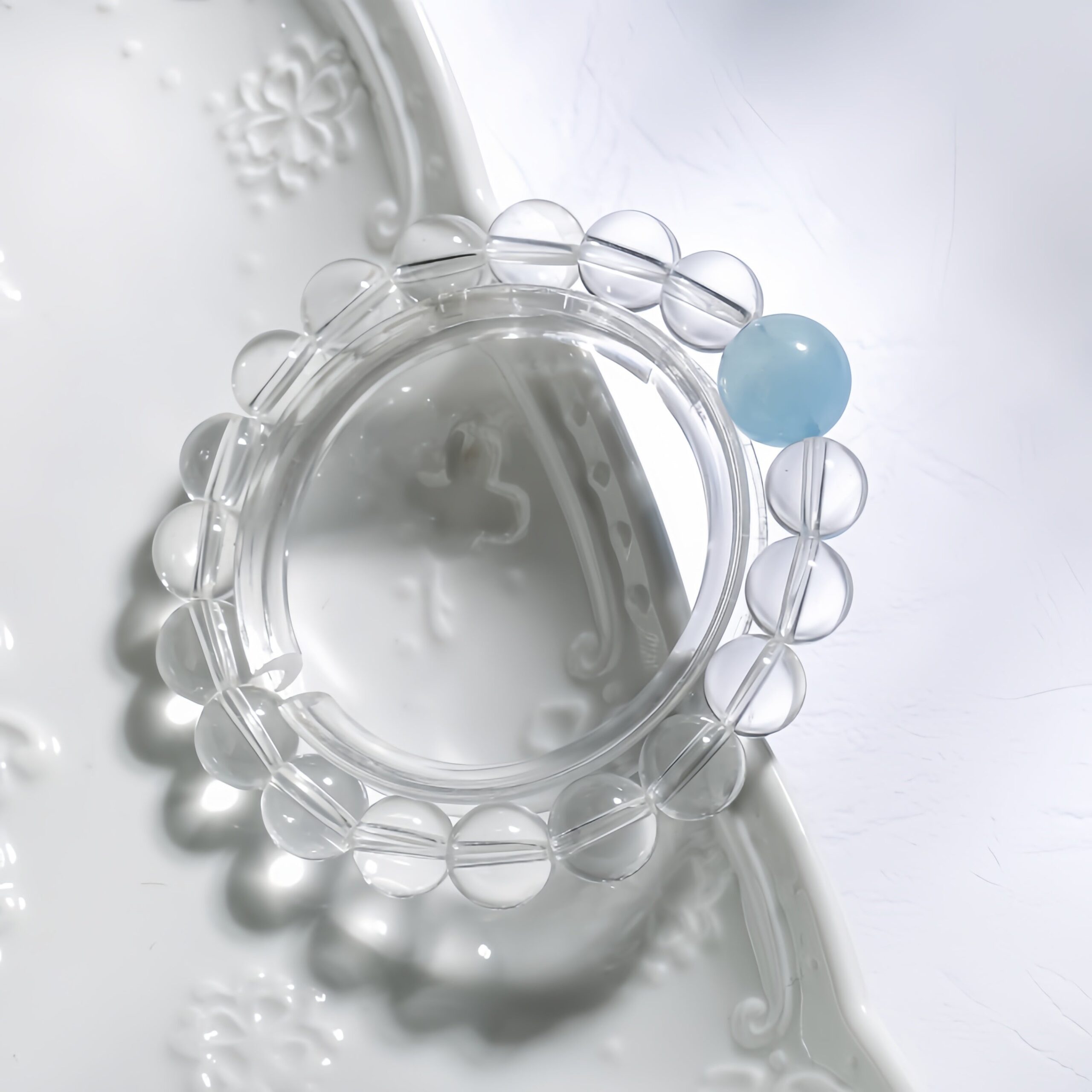 The ultimate subtractive design. Only the clearest quartz and pale blue aquamarine are used to create a sense of untouched purity.