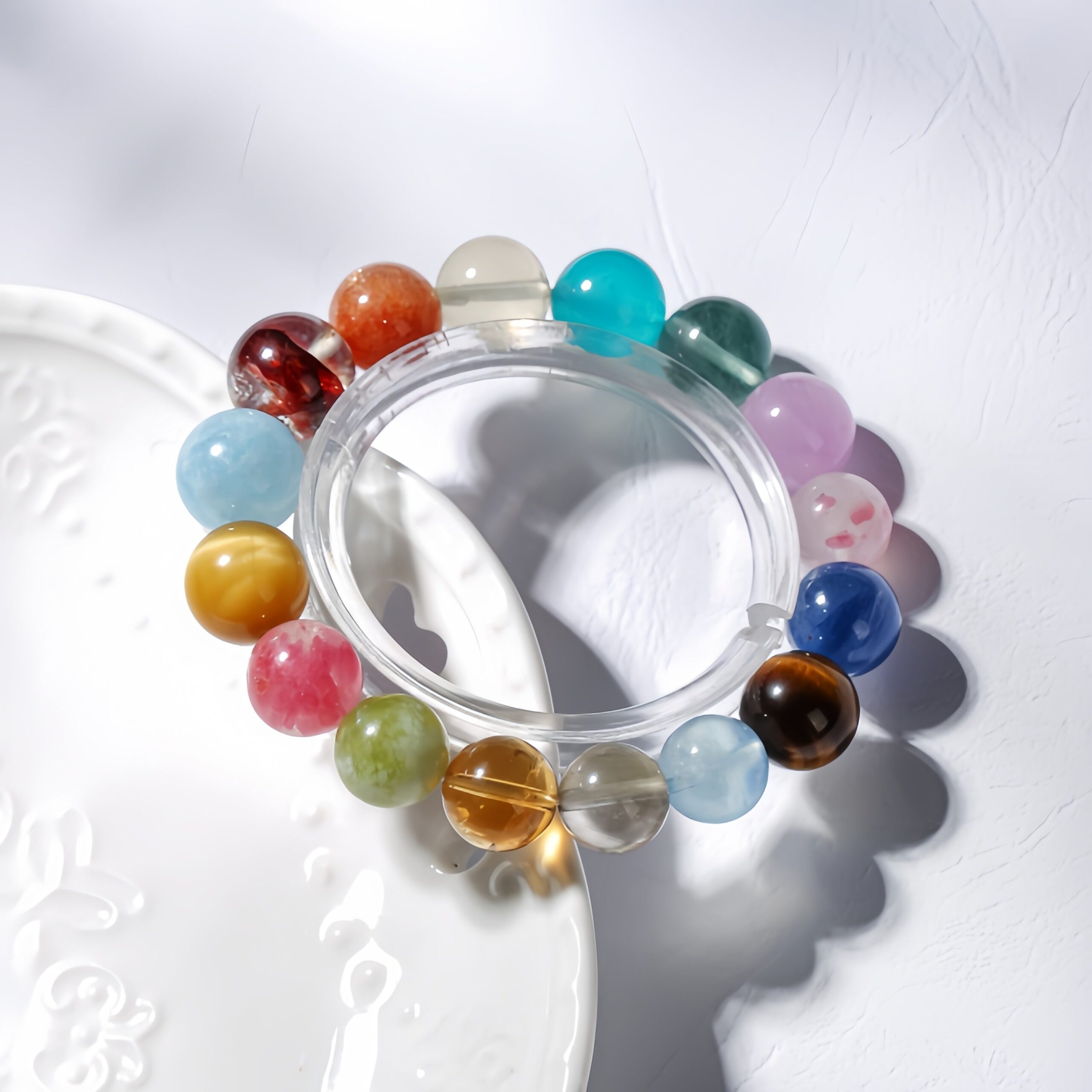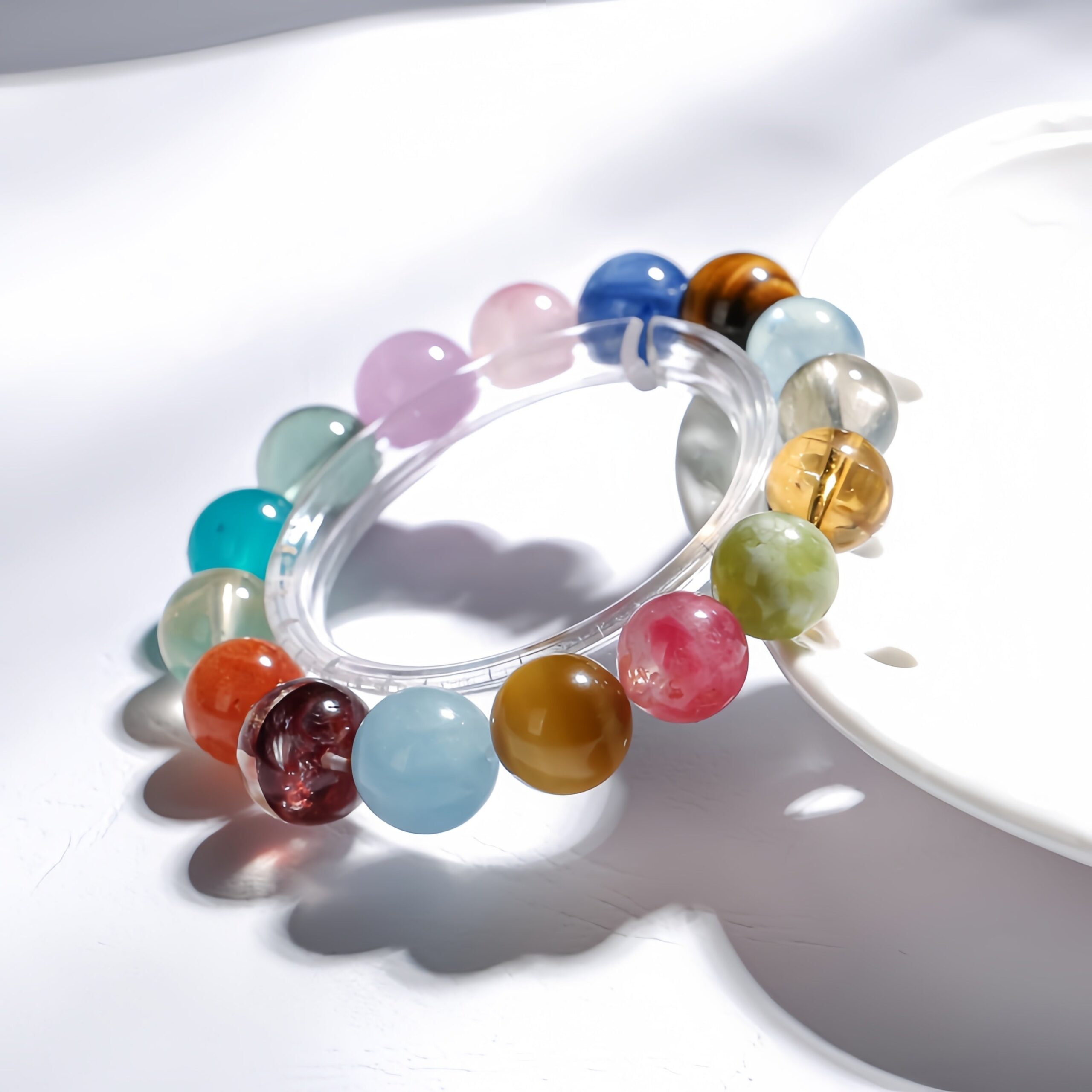 A curated selection of multi-colored crystals with natural transitions. A colorful and friendly accessory that brightens any look.